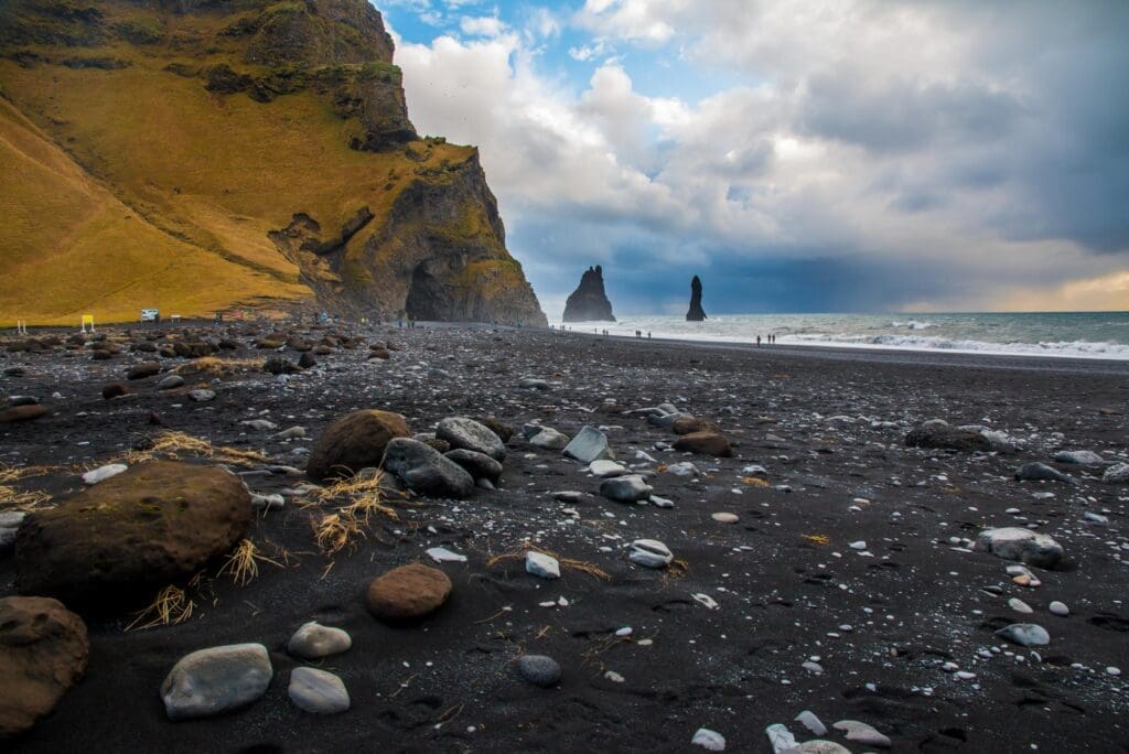 The beautiful Reynisfjara black sand beach is among the most popular visits in southern Iceland. The unusually black sanded beach with rough ocean waves hitting against the basalt-columned wall makes for a spectacular attraction and in 2021 it was rated by Big 7 Travel as the 6th best beach to visit on their annual list of The 50 Best Beaches In The World, highlighting must-see beaches. Reynisfjara can be very dangerous with its powerful ocean waves and rockfalls from the cliffs due to coastal erosion. Both can often be very unexpected and tragically fatal accidents have happened there throughout the years. It may be tempting to have a picture taken after climbing up onto the basalt columns, but people have been surprised by a sudden “sneaker wave” snatching them and the undertow pulling them out to sea. Nothing can be done if this happens so there’s no turning back after that. The waves can look calm, but close to shore the ocean is extremely deep so the waves are almost unbroken when they reach the beach. The beach itself being steep makes the backwash very strong with a pulling force. Be extremely cautious and please admire these forces of nature at a good distance.