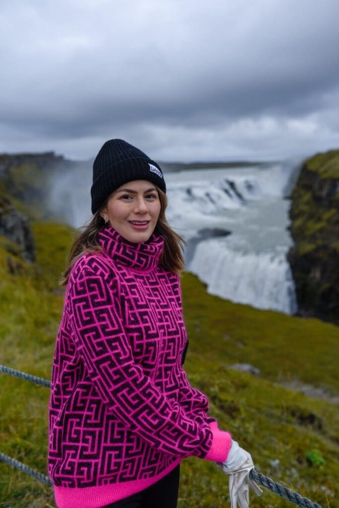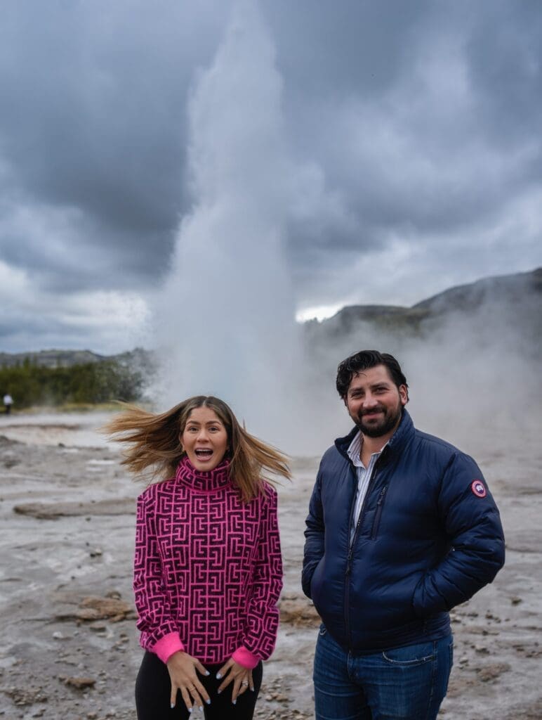 Next, we go to Gullfoss Waterfall, also known as the “Golden Waterfall”. Plunging 32 meters into a rugged canyon, It is one of Iceland’s most iconic natural wonders as well as the second most powerful waterfall in the country. You will be able to witness the cascading water from a series of observation decks and trails that wind their way around the falls, providing panoramic views of the surrounding landscape.