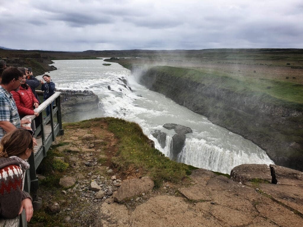 Gullfoss waterfall or ” The golden waterfall” is the last of three locations that sum up the Golden Circle tour. The water in Hvítá travels from Langjökull glacier, before cascading down Gullfoss two stage 32 meter drop into Hvítárgljúfur.
