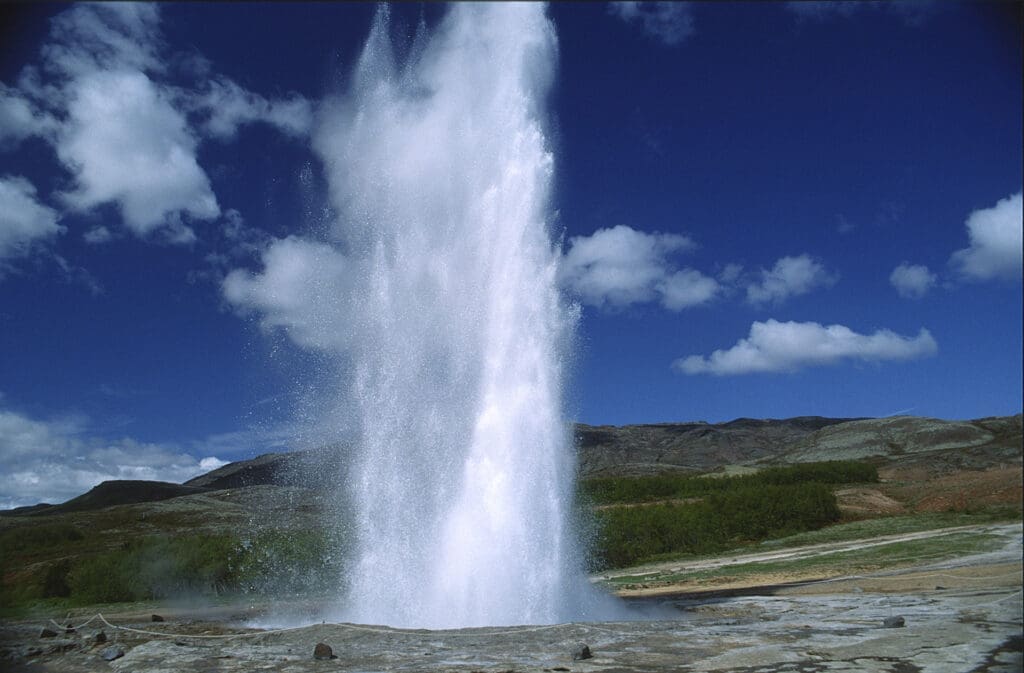 The next stop is at the Haukadalur geothermal area, where the famous geyser is located. The geyser’s namesake is rarely active, but the eruptions of the Strokkur geyser, which are up to 25 meters high, can be experienced every 5 to 10 minutes. The stay is long enough for you to see the numerous hot springs and several eruptions of the Strokkur.