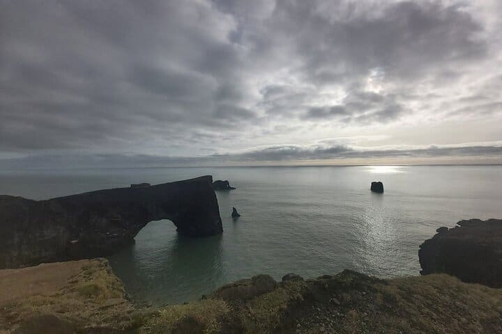- Next, experience the dramatic beauty of Dyrhólaey, a breathtaking coastal rock formation rising from the sea, offering panoramic views of Iceland’s rugged cliffs and black sand beaches.