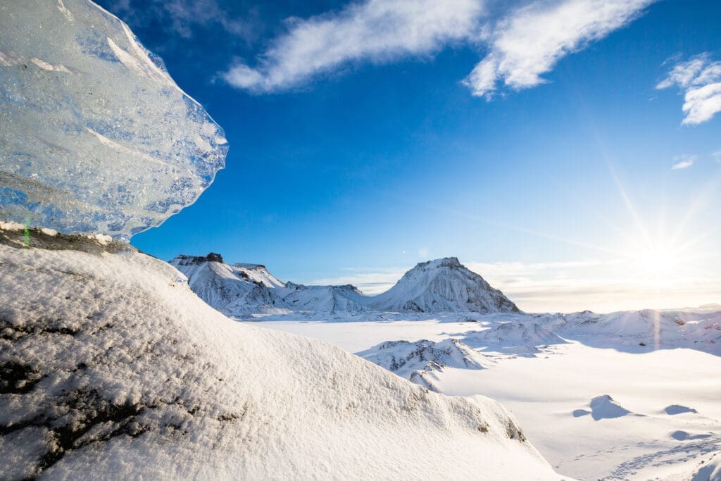 As we leave the main road behind, we’ll journey off-road through black sand desert, and dramatic glacial landscapes, all while your guide shares fascinating stories about Iceland’s unique geology and history. This super jeep tour takes you off the beaten path, ensuring you see the most spectacular, untouched scenery on your way to Katla Ice Cave.
