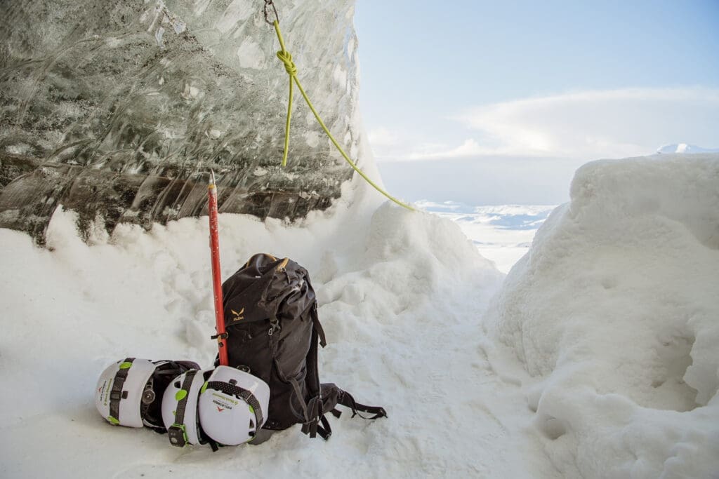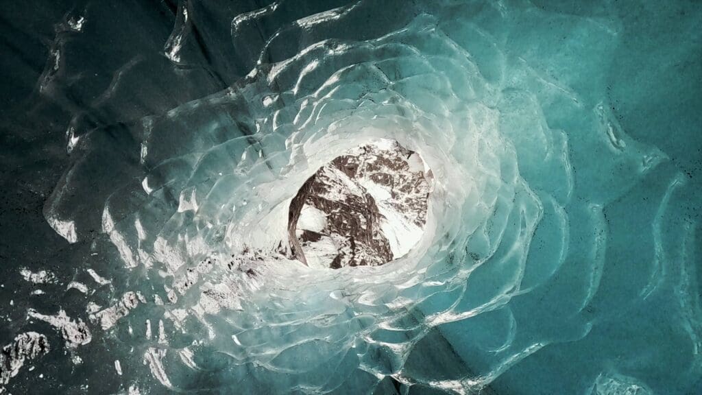 Once we arrive at the glacier, your guide will equip you with all the necessary safety gear, including a helmet, headlamp, and crampons, before leading you on a short glacier walk. As we approach the entrance to Katla Ice Cave, get ready to unbelievable landscape: layers of volcanic ash trapped in shimmering blue ice, creating a mesmerizing contrast you won’t find anywhere else.