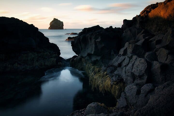 The oldest lighthouse in Iceland, dating back to 1878, perched on the rugged coastline.