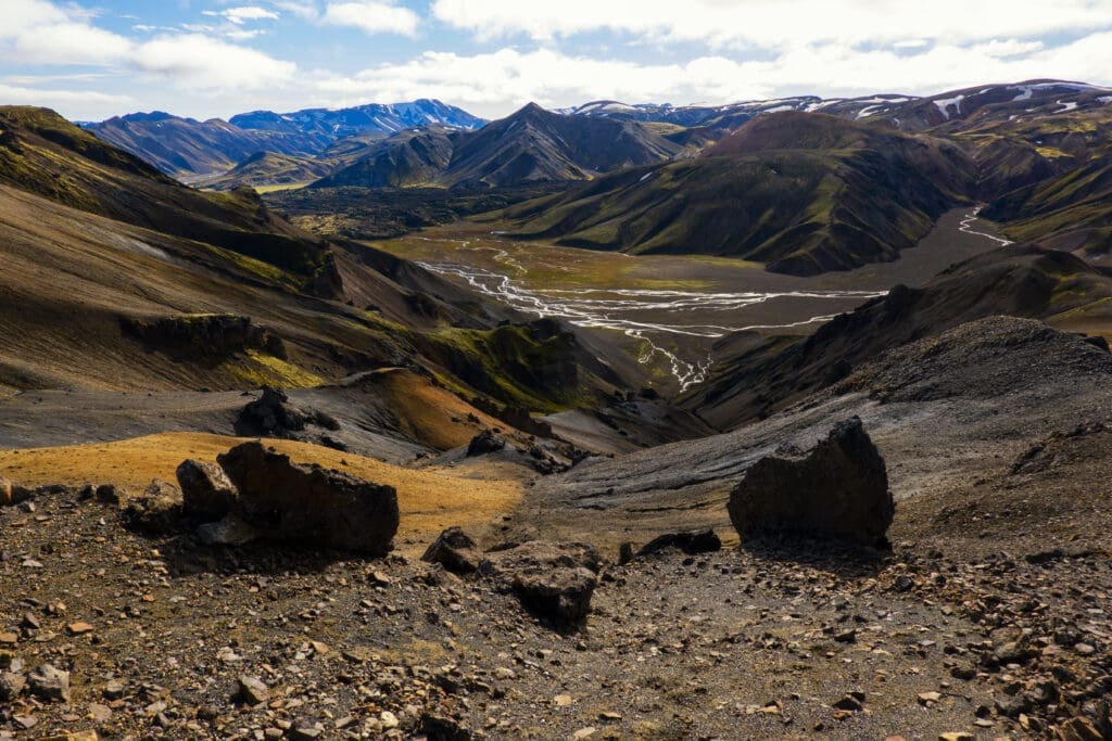 Once at Landmannalaugar, we find a campground with a little cafe serving drinks, coffee, and snacks. There are several easy hikes from the campsite that take you across the mountains with their vibrant colors and the neighboring lava field. The area's primary feature is a natural hot spring where you may, if you wish, have a peaceful bath, so bring your swimsuit and towel.