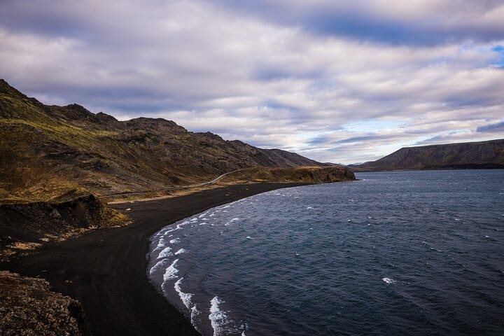 - Kleifarvatn, the largest lake on the Reykjanes Peninsula. It offers a serene escape surrounded by volcanic craters and moss-covered lava fields. Let’s forever document you among these beautiful mountains, and volcanic features alongside the crystal-clear waters of this famed lake!