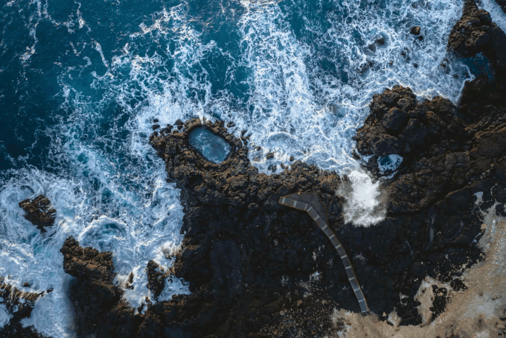 On days when the ocean is calm the seawater in Brimketill will sit still and look safe and serene. It may be tempting to take a dip in Brimketill on those days, but be aware that inside, Brimketill is lined with sharp lava rocks and sudden waves could sneak up on you into this pool and then drain back out.