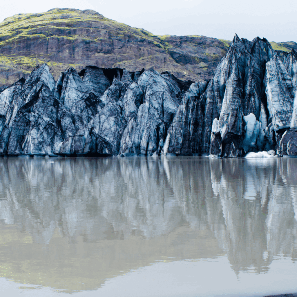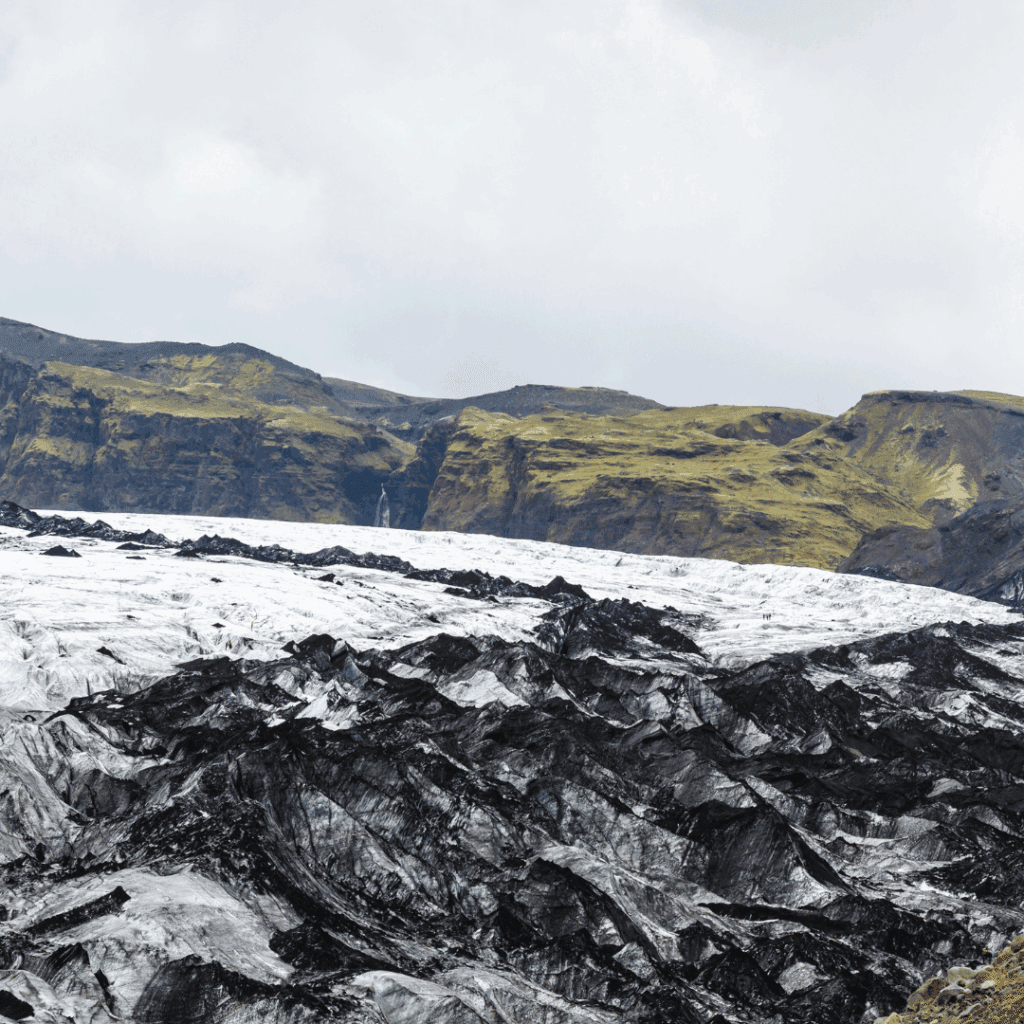 After meeting your expert glacier guide on-site, you'll gear up with crampons, a helmet, harness, and ice axe. Following a short walk to the glacier’s edge, you'll step onto the ice and begin your guided hike into the frozen heart of Sólheimajökull.