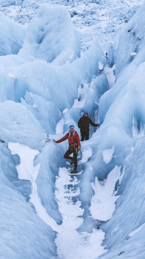Finally, we'll embark on our private glacier hike, where you'll experience the stunning beauty of the glacier up close and personal. Our expert guides will lead you safely over the glacier, exploring ice formations, crevasses, and taking in the panoramic views of the surrounding mountains and valleys.