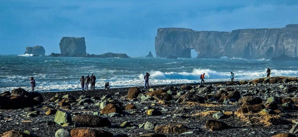 Dyrhólaey is a small peninsula that once stood separate from mainland Iceland. Now joined by a land bridge to the rest of the country, this promenade has become famous for its nesting birdlife, dramatic rock arch, and stunning views. From here, you will likely be able to see the outlet glacier, Sólheimajökull, glistening in the distance.