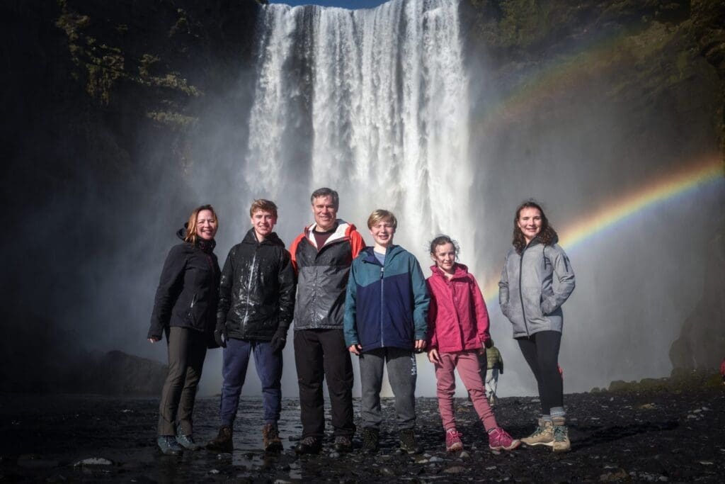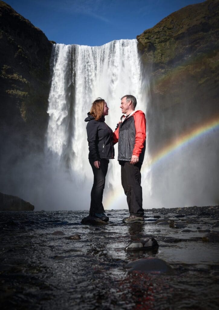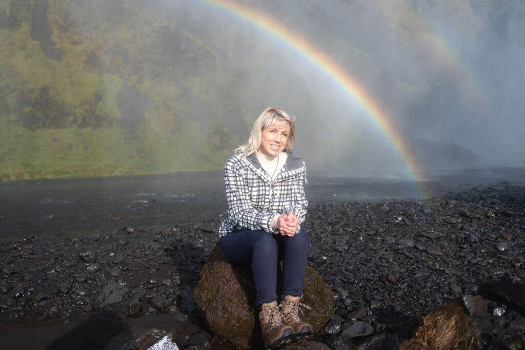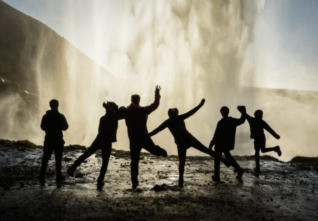 Next up is the mighty Skogafoss waterfall, one of Iceland’s largest waterfalls, with a drop of over 60 meters. Feel the power of this waterfall close up. The mist from the falls can create a beautiful display of rainbows on sunny days if you’re lucky. If you want a workout, climb up a nearby staircase to get a bird’s-eye view of the waterfall and surrounding landscapes.