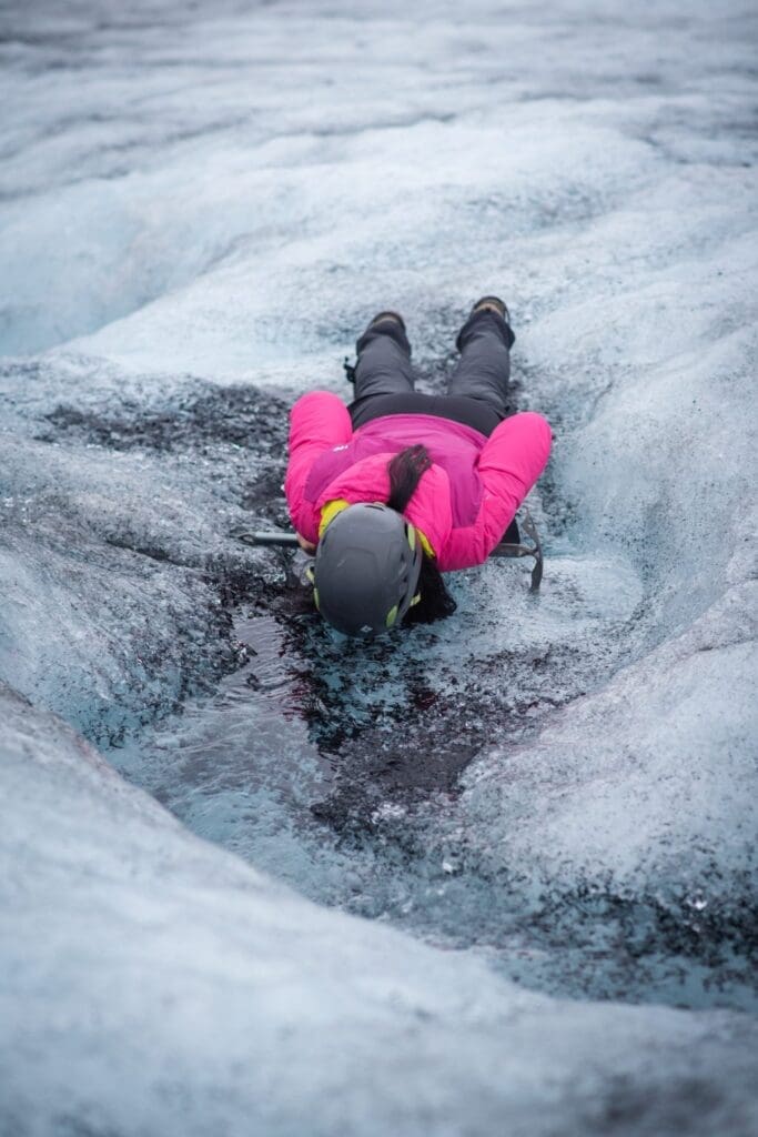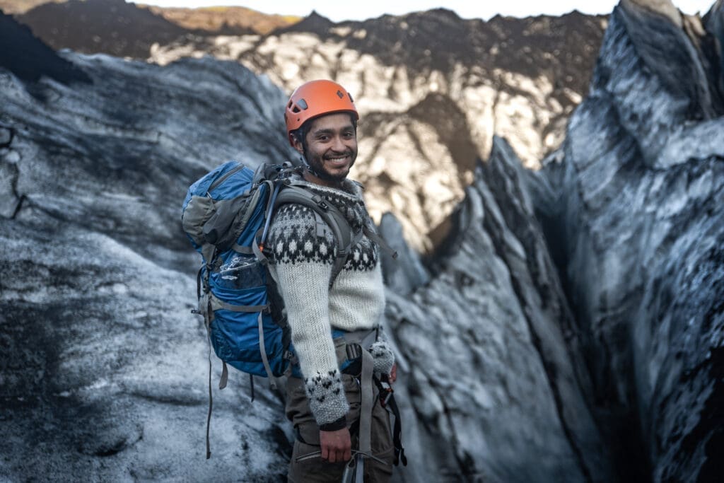 Solheimajokull glacier is our next stop and an absolute highlight of the tour. This is one of the few locations in the world where you can walk from the car park onto a glacier in about 30 minutes. The hike itself will be roughly 2.5 hours in total from start to finish and your guide will gear you up and teach you how to walk on your glacial crampons before starting. It is an easy hike if you are moderately fit but some parts of it have you walking at a slight upward incline to get to the plateau of the glacier. As you make your way up, your guide will share some interesting facts about the glacier’s formation, its importance to Iceland’s ecosystem, and how it has changed throughout the years. Hiking amongst the crystal blue ice and volcanic ash is unlike anything that you will ever experience and your guide will be leading you to the most photogenic features on the glacier including crevasses and deep glacial holes.