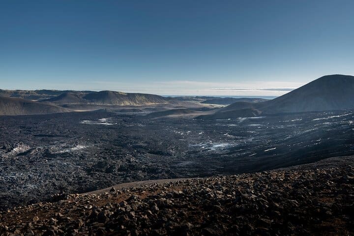 This is a 7 km round-trip hike lasting roughly 3 hours. The trail winds through fresh lava fields and rugged terrain before rewarding you with spectacular views of the crater and the valley shaped by the 2021 eruption. Your guide will share the fascinating story of the eruption and the geology of this volcanic hotspot along the way.