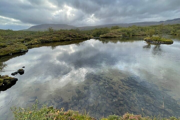 The bridge crosses a rift valley formed by the shifting plates, highlighting Iceland’s position along the Mid-Atlantic Ridge. Informative signs explain the geological forces at play, making it both an educational and visually striking stop.