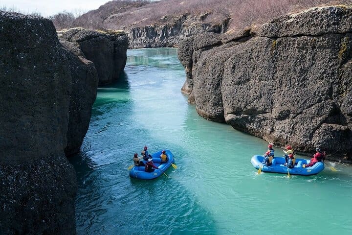Your day begins with a convenient pick-up in central Reykjavík, followed by a scenic drive to the South where the adventure kicks off with an exciting river rafting experience on the Hvítá River. This fun and accessible activity is led by expert guides and is suitable for both beginners and those with prior rafting experience.