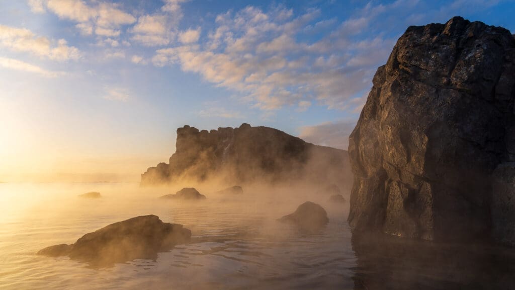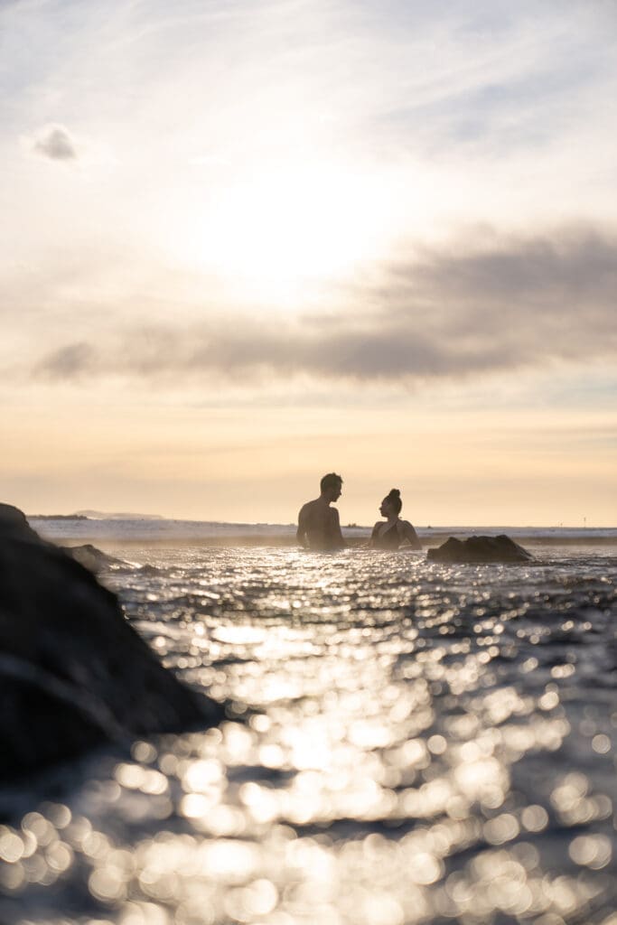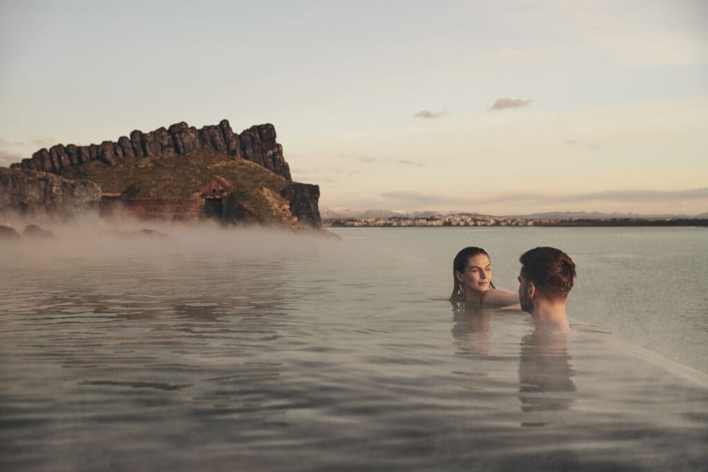 Immerse yourself in warmth at the oceanside geothermal lagoon. The dramatic North Atlantic Ocean stretches out before you. Above, glowing sunsets and stormy skies dazzle, and sometimes the dancing Northern Lights put on a stunning all-natural show. Sky Lagoon is about that Icelandic feeling of warmth and wonder. Join us for rejuvenation and inspiration at the edge of the world.