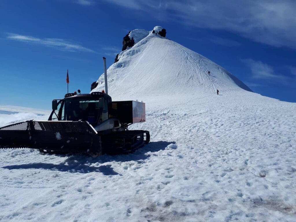 Once at the foot of the glacier, we climb aboard our snowcat to start our slow ascent to the top of Snæfellsjökull.