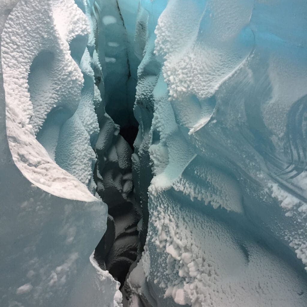 This is a comprehensive glacier tour, where you’ll learn about these massive natural phenomena from your guide and be provided with all the necessary equipment to get some exercise in full comfort and safety. You will also learn the basics of ice climbing and climb the vertical crevasse walls of Sólheimajökull glacier. This tour is for anyone looking to experience one of the natural wonders of the earth. You’ll meet your guide in the Sólheimajökull parking lot and then make your way to the ice itself, a brisk 30-minute walk to get the blood flowing. (The glacier was once closer to the lot, but warming weather and the glacier’s own movement has caused it to recede into the distance.) Sólheimajökull is an outlet glacier of Mýrdalsjökull, one of the biggest glaciers in Europe. It is featured in detail in the 2012 documentary “Chasing Ice,” an award-winning investigation of climate change. Once you reach the ice, you’ll be given plenty of time to marvel at the eerie silence and feeling of isolation, as if you and your fellow hikers are alone in a vast, empty world of ice and snow. You’ll view millennia-old blue ice, created when oxygen bubbles are trapped in the snow and compressed into ice by the enormous weight of the glacier pressing down upon it. You’ll be able to gaze deep into a glacier moulin, a vertical shaft like a well, which can go all the way to the bottom of the glacier. The guide will set up a climbing rope and you will learn how to ascend a vertical wall using ice axes and crampons. What’s down there? The ice cap sits on top of the mighty Katla volcano, one of the largest and most active volcanoes in Iceland. On a clear day, you may also be able to see Eyjafjallajökull, another glacier to the east which famously brought European air traffic to a halt in 2010 when its eruption filled the sky with fire and ash. Never been on a glacier walk before? Never used crampons or ice axe? No worries! Experienced guides will teach you all you need to know and have you walking safely on the glacier in no time. Safety equipment and briefings are provided before each tour. Nature is best experienced free of worries!
