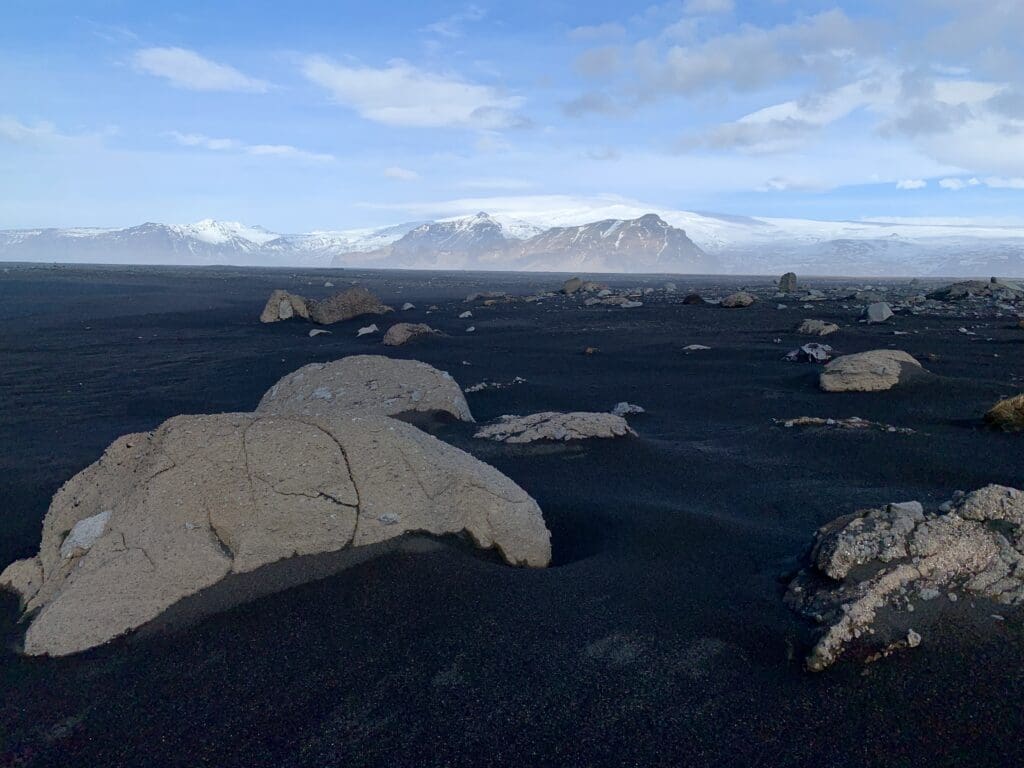 Sólheimajökull glacier and the black sand beach on the south coast.