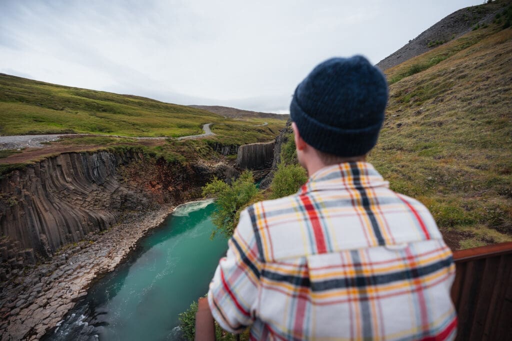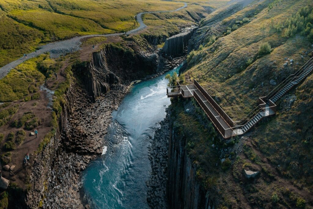 In this tour, we will visit Stuðlagil Canyon from the newly renovated viewpoint at Grund. From there, you can get a good aerial view of the basalt columns and the magnificent canyon from the safety of various carefully crafted viewing platforms and trails.