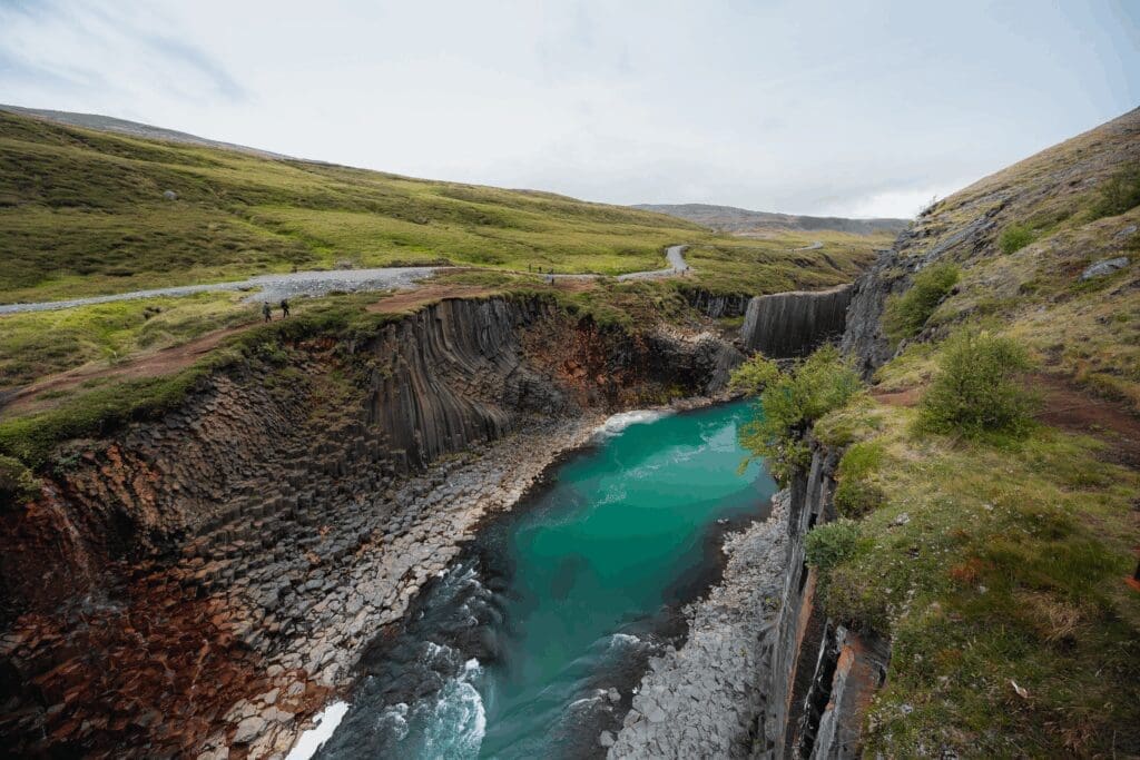 Stuðlagil Canyon is home to one of Iceland's largest and most breathtaking basalt column formations, making it an incredibly photogenic site, mainly when the river runs clear. The striking blue-green hue of the water, contrasted with the vibrant basalt columns, never fails to leave visitors in awe. As a glacial river, its appearance changes with the seasons. Yet, despite these shifts, the canyon and river remain consistently stunning, making this a must-visit destination for travelers.