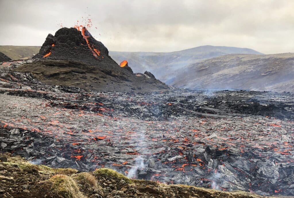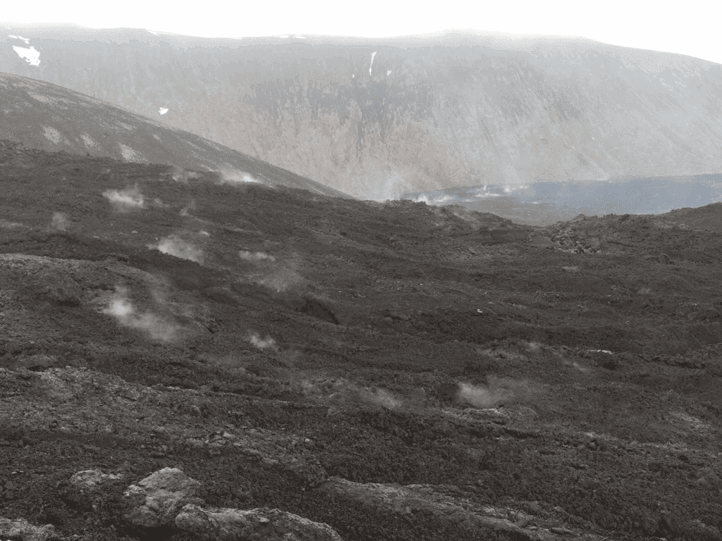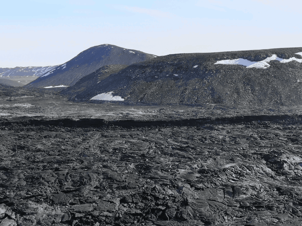 Once you’re closby the site of the volcano, you will witness freshly made lava fields formed by the magma flow.