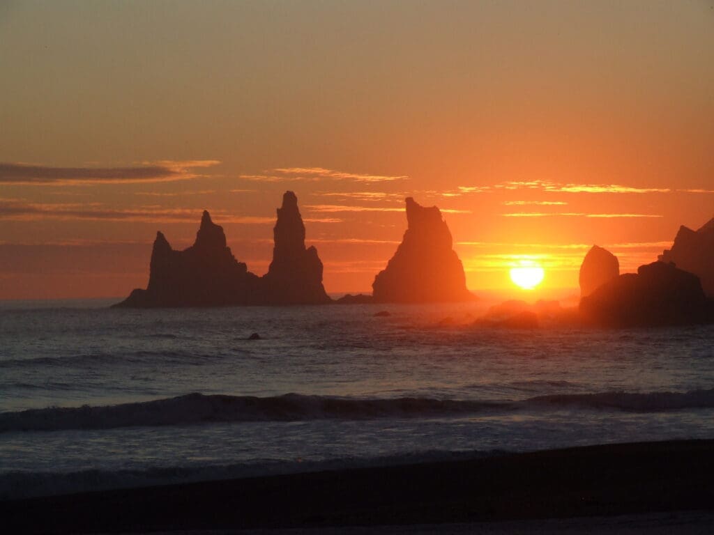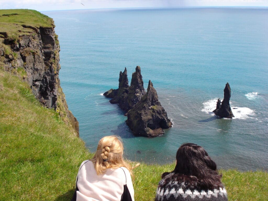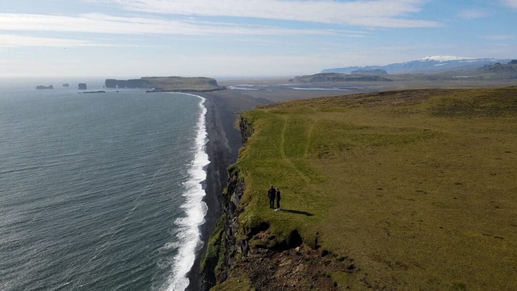 At the top of Reynisfjall, prepare to be amazed by panoramic views of Reynisfjara, Iceland’s most famous black sand beach, and the iconic sea stacks of Reynisdrangar. You’ll also spot the legendary Dyrhólaey arch, a natural rock formation sculpted by volcanic forces thousands of years ago. This bird’s-eye perspective is one of the most stunning viewpoints in all of Iceland.