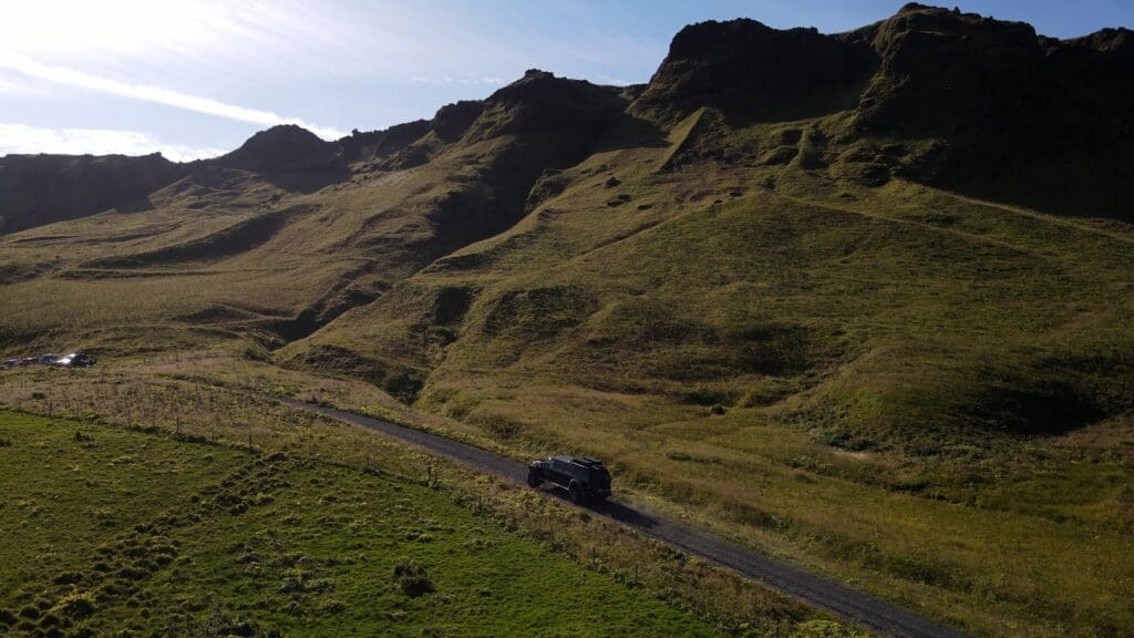 Your journey begins in our base in Vík, where our local guide will greet you before we set off towards the mountains in our powerful Super Jeep. Feel the thrill as we climb one of the steepest private roads in Iceland. As we ascend, the dramatic scenery of Iceland’s south coast unfolds before your eyes.