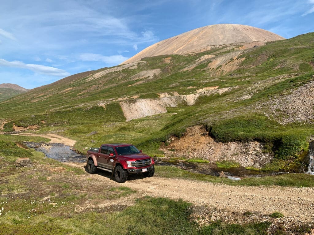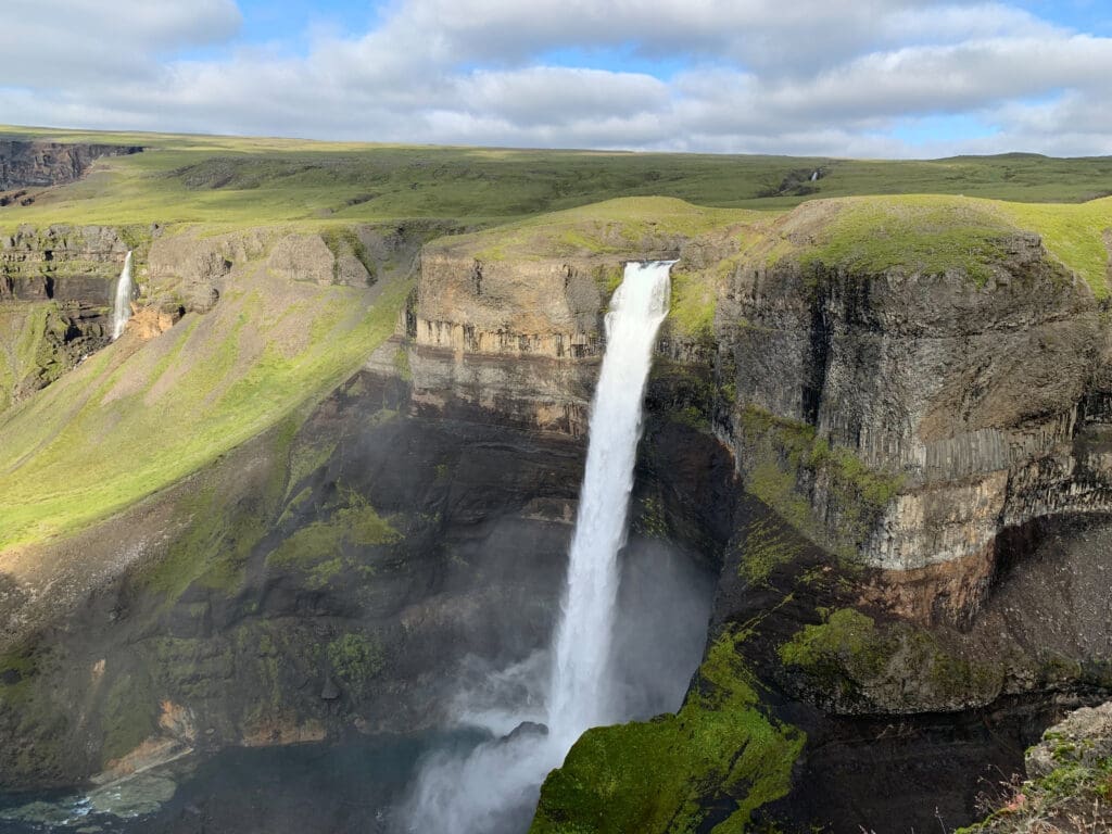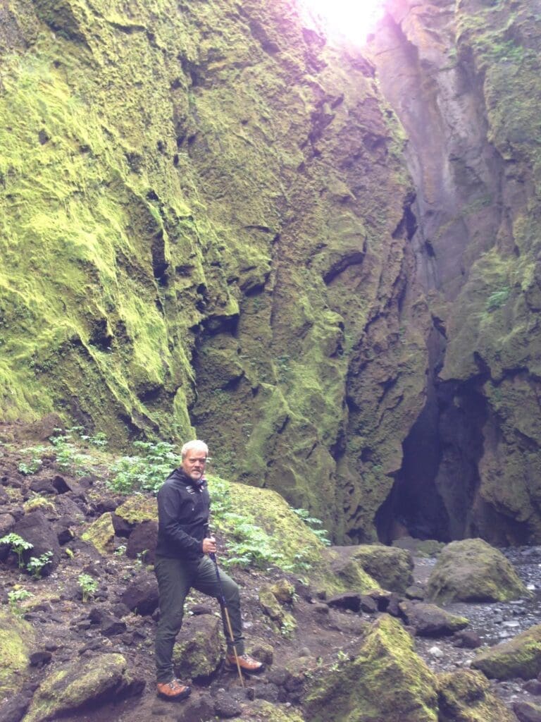 Destination of the day is Þórsmörk – English spelling Thorsmork, the “Woods of Thor the Thundergod”. It’s where the Icelanders traditionally go themselves to get away from it all. Guarding Þórsmörk nature reserve from unwanted traffic are several streams and glacial rivers cutting the rough track. Crossing requires caution. And specially modified vehicles of course. First highlight of the day is the powerfully beautiful Seljalandsfoss waterfall, a good 60 meters of constant rush. Conditions permitting, how about a walk around it – yes, you can go behind Seljalandsfoss. Soon after the road starts disintegrating and nature takes over your senses. Bordering Þórsmörk nature reserve to the south is the famously ash-spewing volcano Eyjafjallajökull, topped by glacial ice and snow. Amongst numerous places of interest on our route is the Gígjökull glacier lagoon which is actually off the maps now. In 2010 it disappeared under volcanic rubble in a catastrophic flood of glacial melt and debris, caused by the Eyjafjallajökull eruption. Where we go in the Þórsmörk Nature Reserve depends from day to day on weather and other conditions, but canyons, woodlands and caves are ideal settings for short walks.