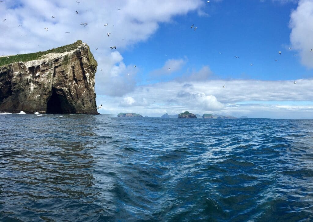 During this trip we will sail with you to the most popular islands in our archipelago. You will see the elephant rock, a lot of wildlife, nature, islands and sea caves. You will get to know the history of Vestmannaeyjar and see unique rock formations. In good sea conditions we will even sail to Súlnasker, which is without a doubt the most magnificent island or skerry in Westman islands. The island’s cliffs rises up 60-70 meters and stands on four posts.
