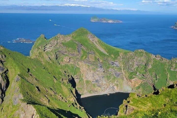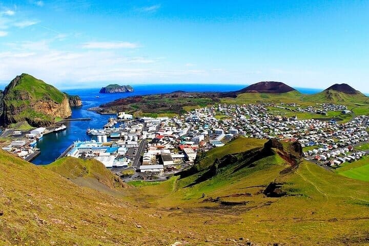 Your journey continues with a scenic 40-minute ferry ride from Landeyjahöfn to the stunning Vestmannaeyjar islands. As the ferry glides across the waters, you’ll enjoy breathtaking views of the South Coast, the dramatic cliffs of the archipelago, and, on clear days, the mighty Eyjafjallajökull glacier in the distance. The approach to the islands is truly magical, with the rugged volcanic landscapes and vibrant birdlife hinting at the unique adventure awaiting you. This short but memorable ride is the perfect way to transition from the mainland to the enchanting Vestmannaeyjar.
