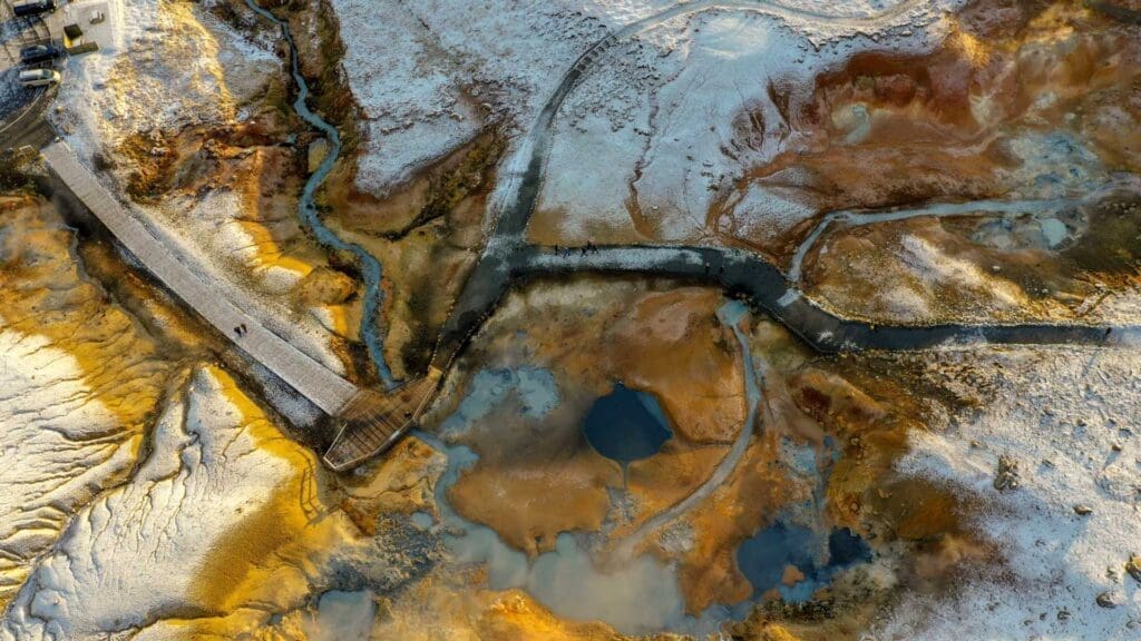 Your adventure begins with a pickup in Reykjavík, followed by a scenic drive through the Reykjanes Geopark, a UNESCO-recognized wonderland of geological marvels. Our first stop is the Seltún Geothermal Area, where bubbling mud pools and steaming vents showcase the dynamic geothermal activity beneath your feet.