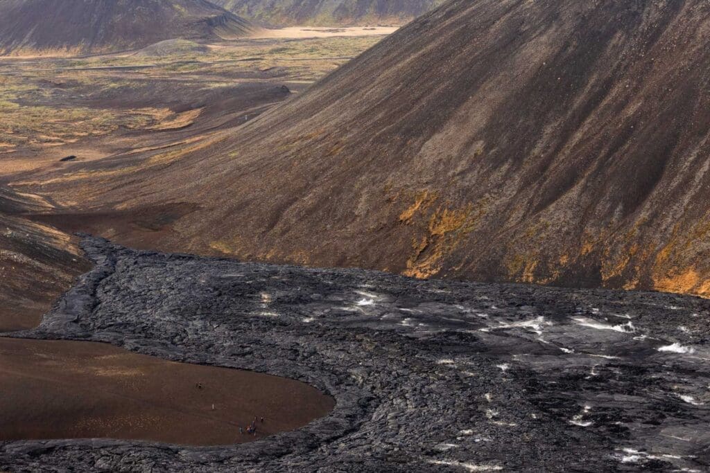 Next, we head to Fagradalsfjall Volcano, the youngest volcano in Iceland, where we’ll explore the dramatic lava fields left behind by its recent eruptions. While there’s no longer any flowing lava, the hardened landscape still tells an incredible story of nature’s raw power. The hike to the viewing point takes about 45 minutes one way, crossing terrain that looks almost extraterrestrial. Once there, our expert guide will provide fascinating insights into the geology of the area and stories from the time of the eruptions. After enjoying the views and taking photos, we’ll hike the same way back—another 45 minutes. The 5.5 km (3.4-mile) moderately difficult hike takes about 2 hours with photo stops, making it ideal for those in good physical condition.