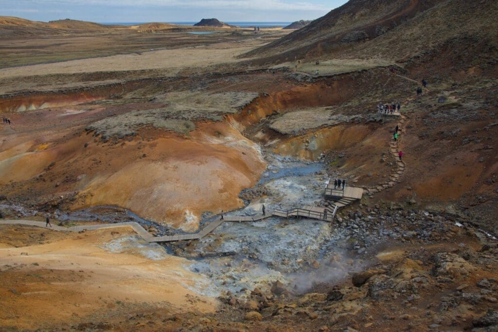 Our first stop is Seltún, one of Iceland’s most vibrant geothermal hotspots. Admire the colorful, steaming ground, bubbling mud pools, and hissing springs that showcase the Earth’s raw geothermal energy.