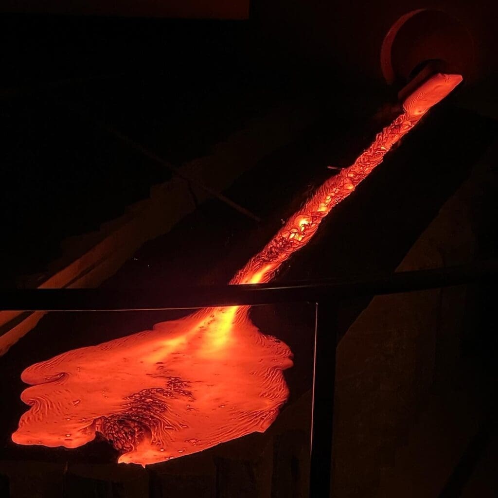 In order to recreate a miniature volcano eruption, they superheat real lava from the 1918 Katla eruption and once molten, pour it into a showroom full of people. It is an incredible, unforgettable experience. In an instant, the showroom heats up to a toasty temperature. And as the audience sits safe in their seats yet only a few feet away from the flowing lava, it is mesmerizing to see, hear, smell and feel the incredible heat that radiates from it. It truly is a sensational experience!