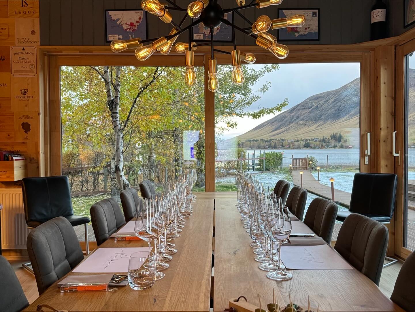 The newly built Wine School is a masterpiece of Icelandic craftsmanship, featuring rare native wood and panoramic views of Lake Meðalfellsvatn. Whether under the magical midnight sun of summer or the dancing Northern Lights of winter, the setting elevates every moment into an extraordinary experience.