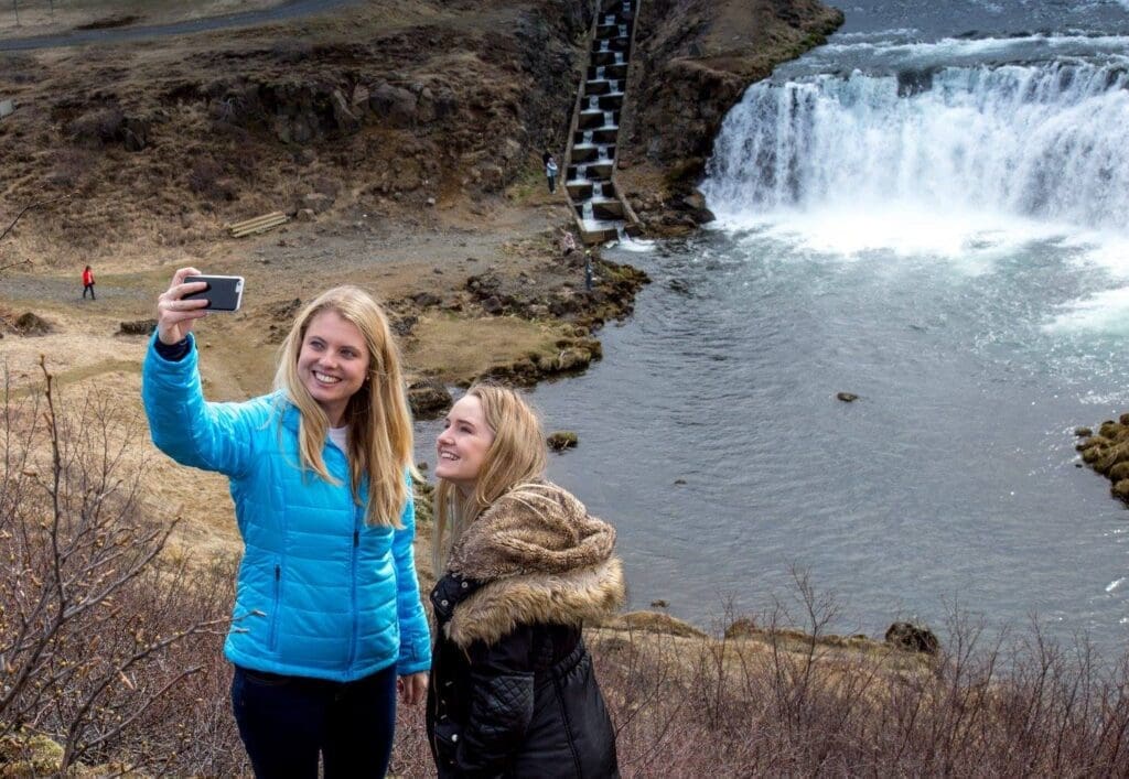 When Canadians and Americans go there they call it “the mini-version of Niagara falls”, we don’t know if we agree on that though, if you ask us it’s even prettier. The waterfall is located close to the second biggest glacier in Iceland, Langjökull, and you will see the fresh glacier water falling down 32 meters total into the canyon.