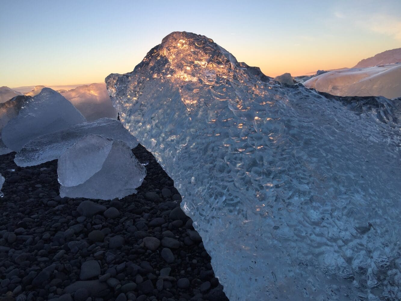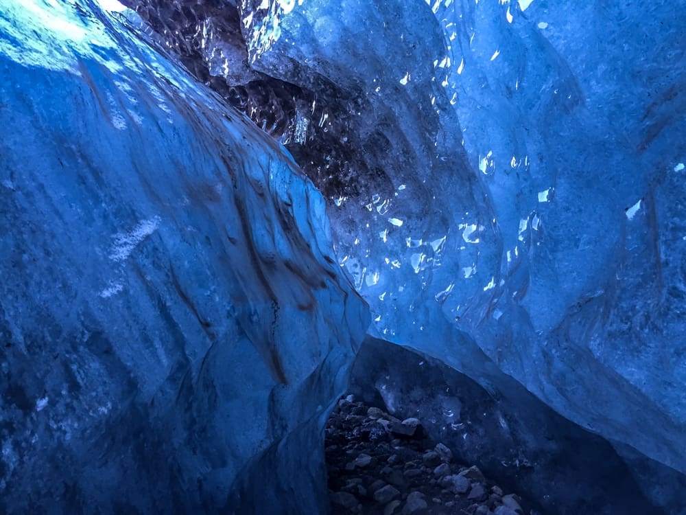 Day 2: We continue our journey towards Jokulsarlon Glacier Lagoon and Diamond Beach. In Skaftafell National park you will meet our certified glacier guides and embark on a glacier hiking and ice caving tour on Falljökull. Ice Caves are only found during the wintertime when the glacial rivers retract and the water freezes and they can look completely different every year.