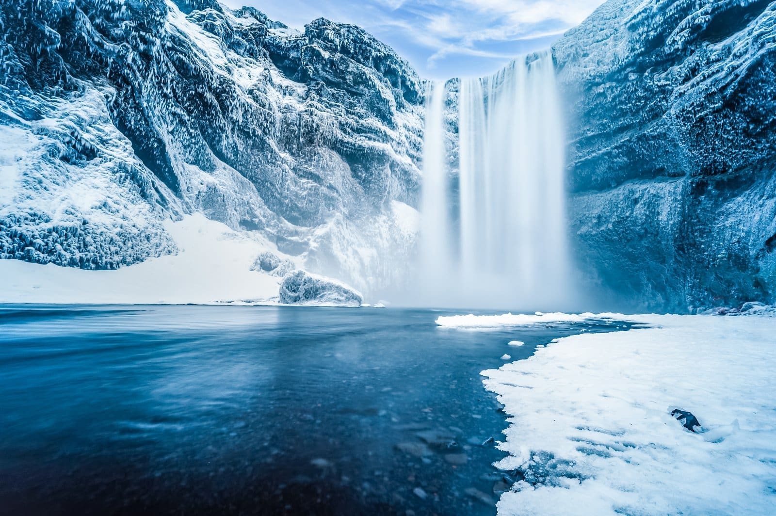 Next, stop and admire the majestic Skógafoss Waterfall before driving to Seljalandsfoss Waterfall, with a height of 60 m. Here you can walk behind the waterfall but dress well, as the water mist behind the waterfall can make you wet.