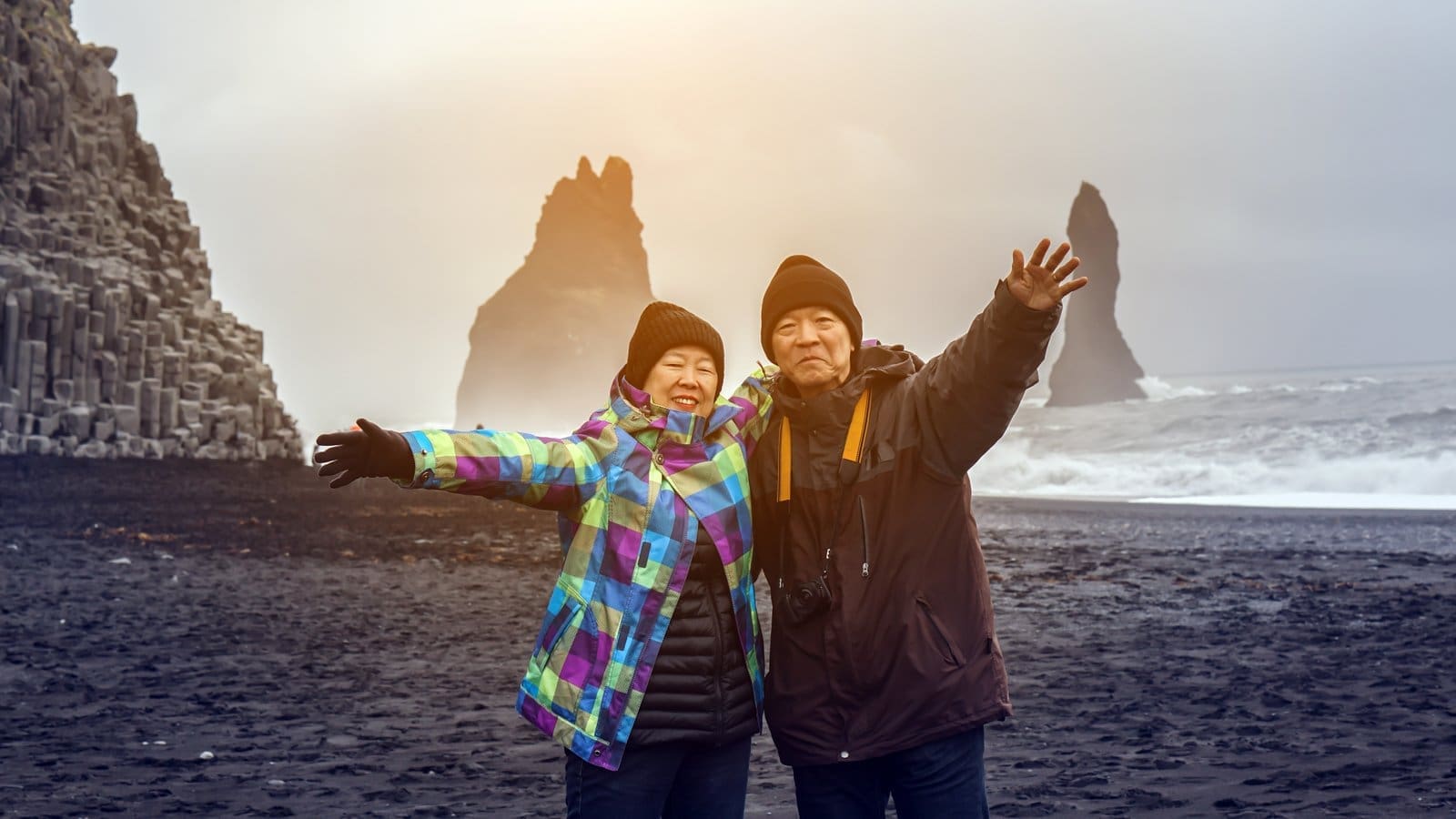 - Walk along Reynisfjara’s black sand shores, with striking basalt columns and powerful waves