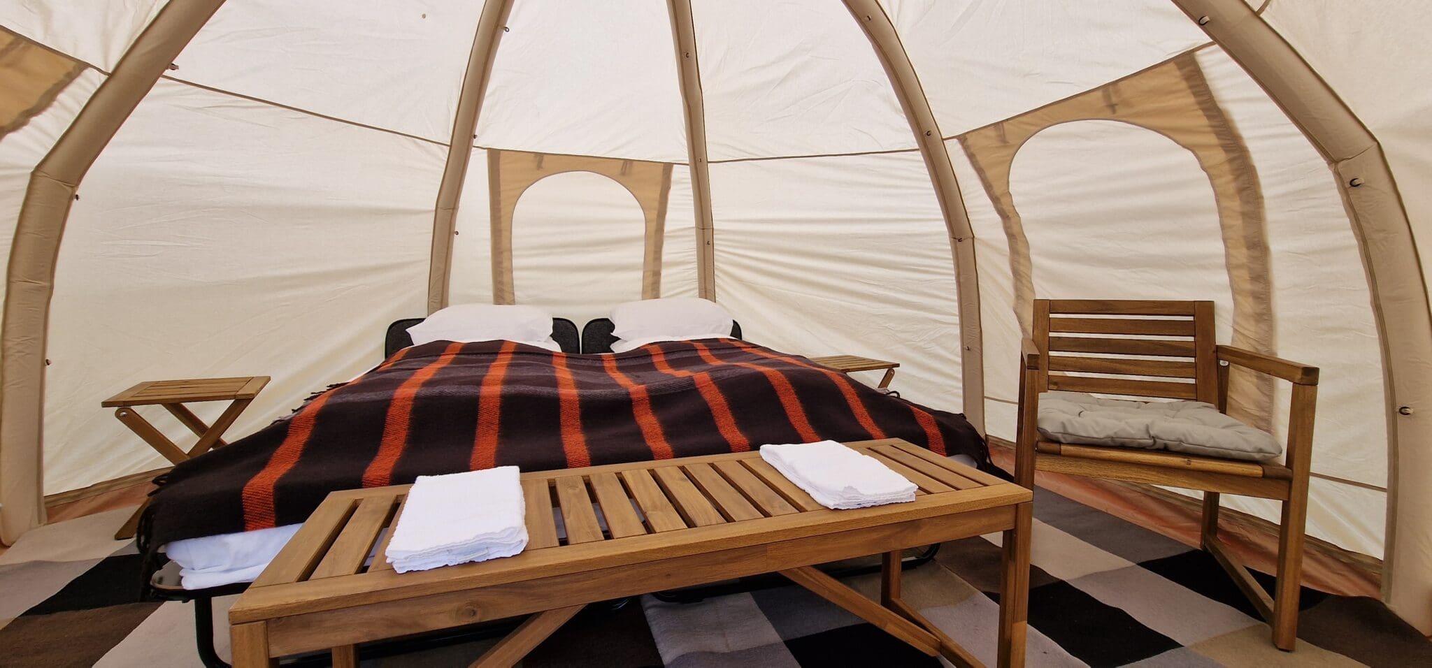 We’ll stay at Haukafell Camping, a remote site beloved by locals for its natural beauty. Accommodations will be in spacious 16m² tents equipped with: