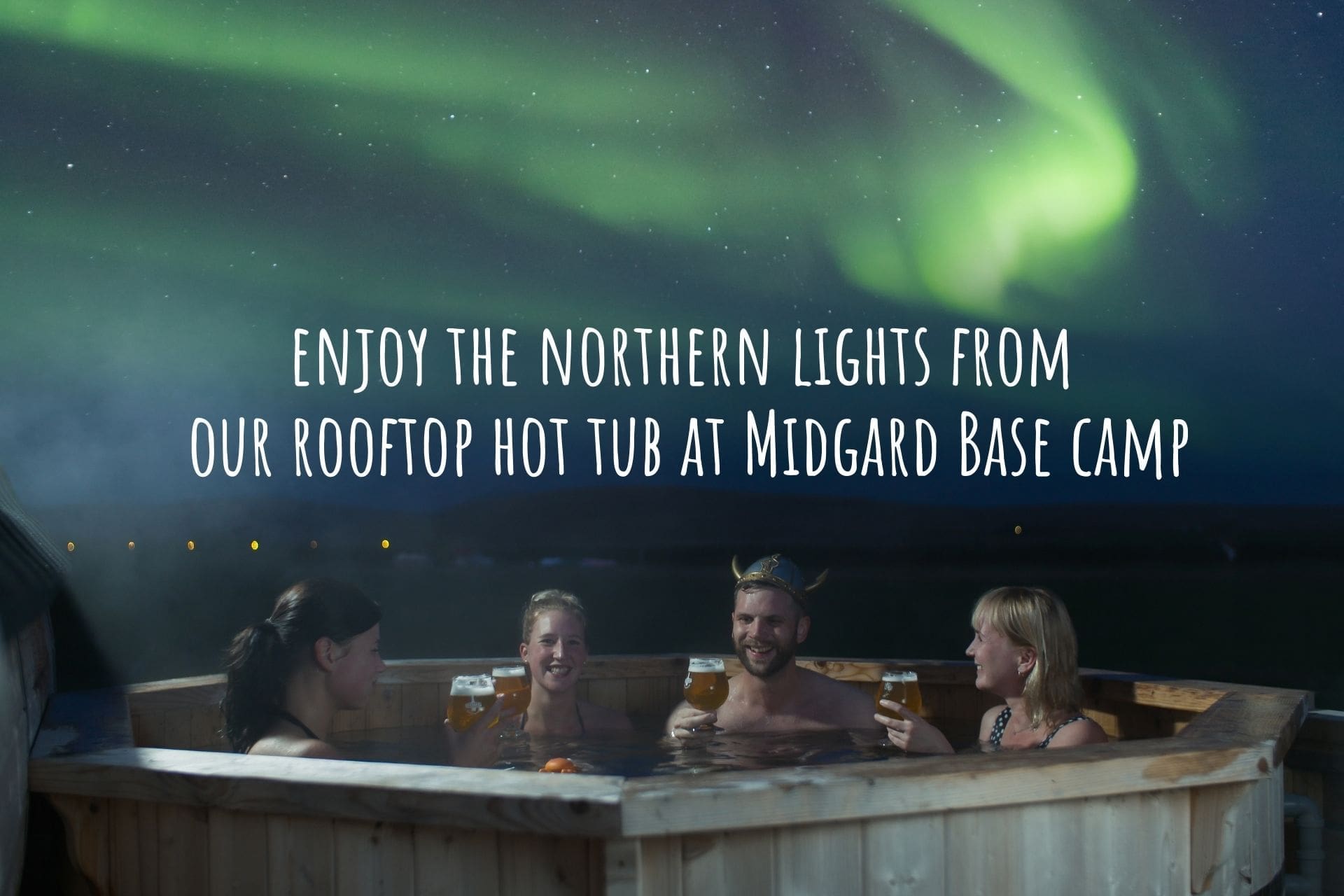 Northern Lights viewing: Unwind in the rooftop hot tub and sauna while waiting for the Northern Lights. The Midgard team will keep you updated on the forecast. You can even monitor the Northern Lights webcam from the comfort of your room.