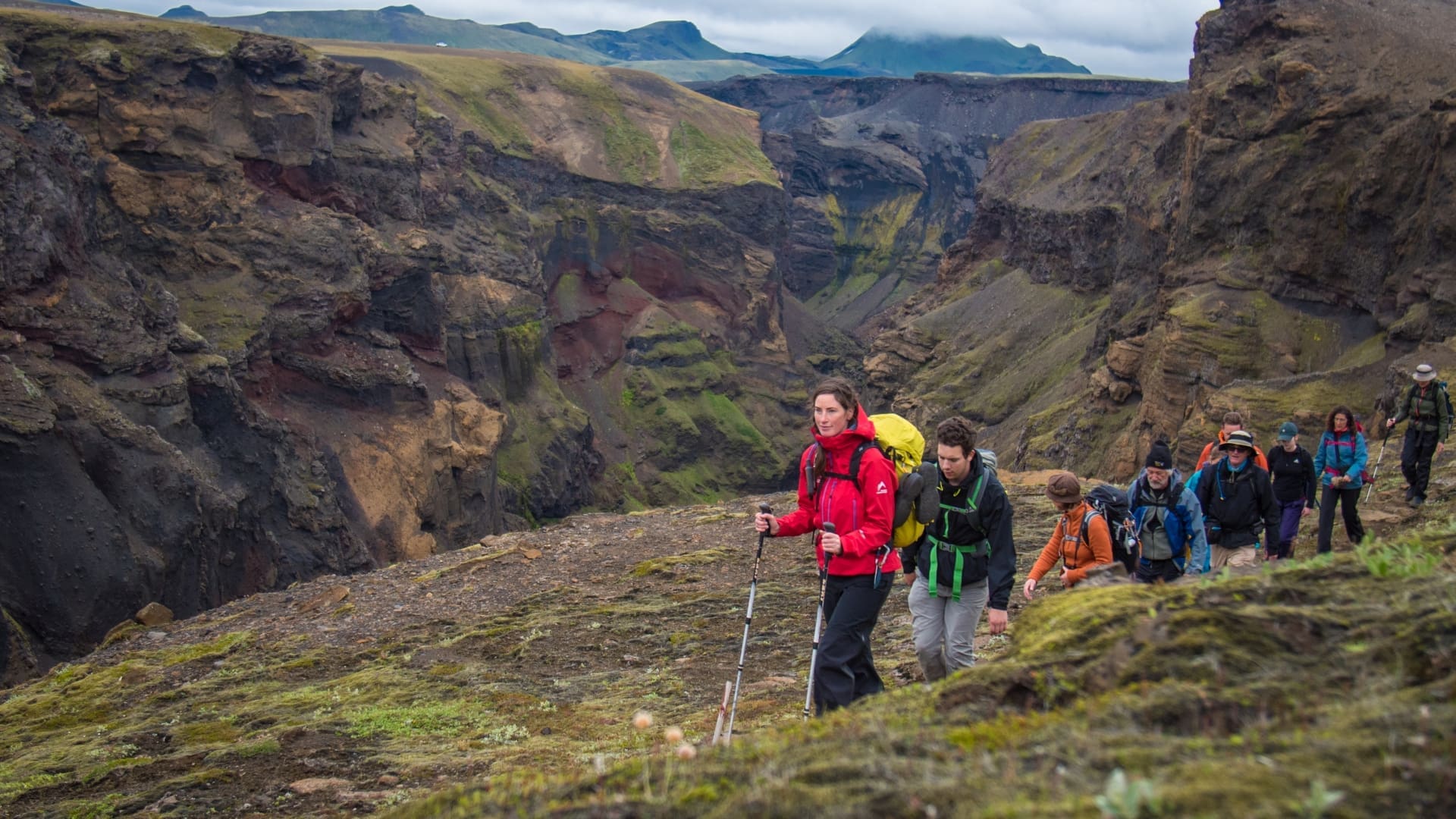 Hands down the best known trek in Iceland. This trail takes adventurers from the geothermal valley of Landmannalaugar and the southern highlands, over the southern highlands to the Þórsmörk valley, at the foot of world famous Eyjafjallajökull volcano. The trail crosses many spectacles including the third biggest geothermal zone in the world, through yellow rhyolite mountains, over black deserts, past great canyons and finally into the verdurous valley of Þórsmörk. It is no coincidence that the “Laugavegur” hike each year attracts travellers from around the world in addition to being a great favourite amongst locals. Come see what all the fuss is about!