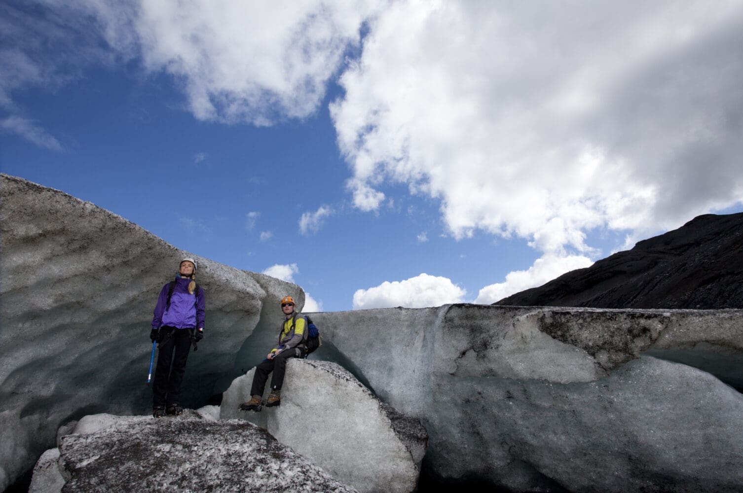 The journey continues along the South coast in the direction of Skaftafell and Vatnajökull National Park. At Skaftafell, another of Iceland´s three national parks, we will take a 3-hour glacier hike on one of Vatnajökull outlet glaciers, led by one of our skilled glacier guides. After that bracing experience, we will explore a little further Jökulsárlón glacier lagoon where we can expect to see floating icebergs and the occasional frolicking seal. Beside the glacier lake, we will find another black sand crystal beach, which is usually filled with clear icebergs that have floated back to shore. For the evening, we will lay our heads in accommodations in the pleasant place in South East.