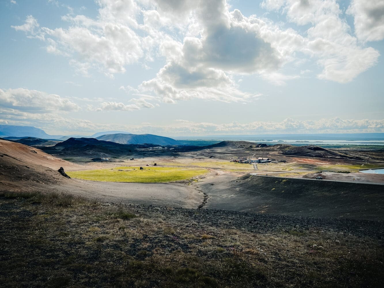Travel time to this destination is 15 minutes. We will spend about 40 minutes here. There we will do a small walk at the bottom of the evaporated lake to see lava formations. The lava formations can also be seen from the viewpoint of the Borgir Cafe restaurant, so it is possible to stay there and skip the walk. Toilets are next to the restaurant.