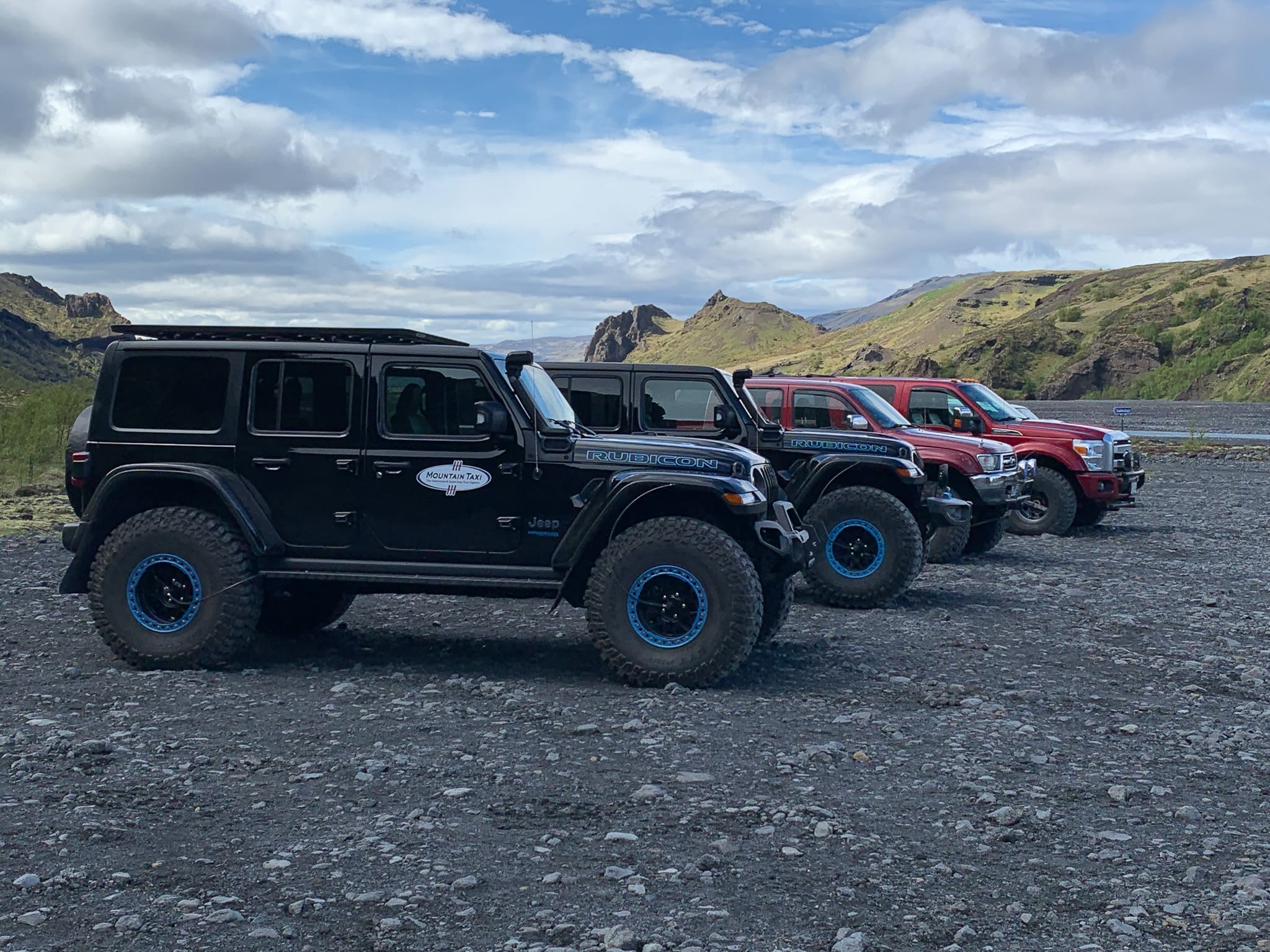 likely be able to see an eruption every 5 to 7 minutes. Spouting boiling hot water into the air at heights of approximately 25 to 30 meters, we’ll stop here to enjoy one of nature’s greatest shows while exploring the colourful hot springs. Next, we’ll be enroute to the magnificent Gullfoss waterfall: a two-tiered drop into the white Hvita river with its powerful glacial run-off waters. Then we’re northbound at the beginning of the Kjölur interior mountain road, famous for being the second longest route through the Highlands of Iceland. This road has been around since the early Icelandic settlements and is even mentioned in Icelandic sagas. We’ve come to see the second largest glacier in the country, Langjökull. In the summer, we’ll drive onto the glacier; in the winter, snowmobile activities take place either on or next to the glacier, depending on conditions. The snowmobile option allows for an extra hour to explore (or longer, if requested). Next stop is dinner in the country side before heading back to Reykjavík and hunt for northern lights in the winter or enjoy the midnight sun