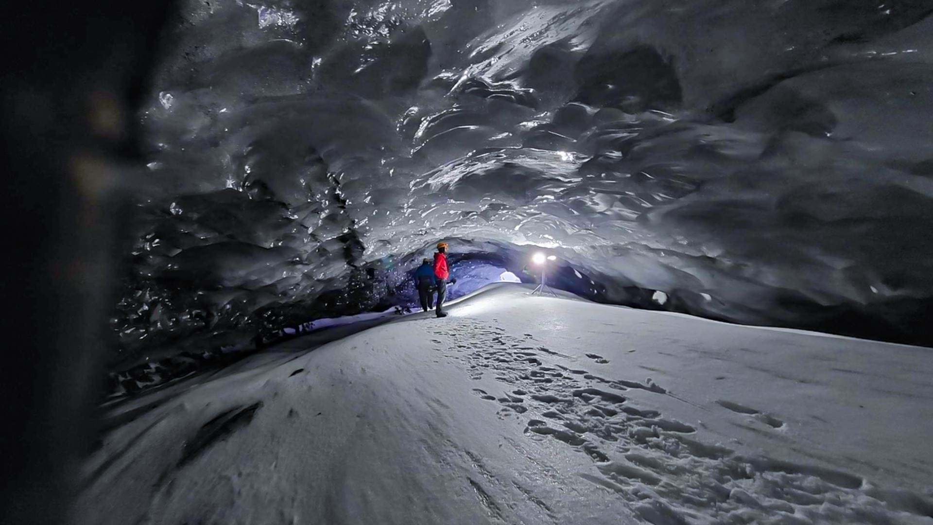 The ice cave experience lasts about 45-60 minutes. It is followed by a 10-15 minute hike back to the truck and a drive back to base camp. As the sole tour operator granted access to this hidden gem, we offer an exclusive passage into a world few have seen. Far from the crowds, this is an intimate encounter with one of Iceland's most majestic creations, a privilege reserved for those who seek the extraordinary.
