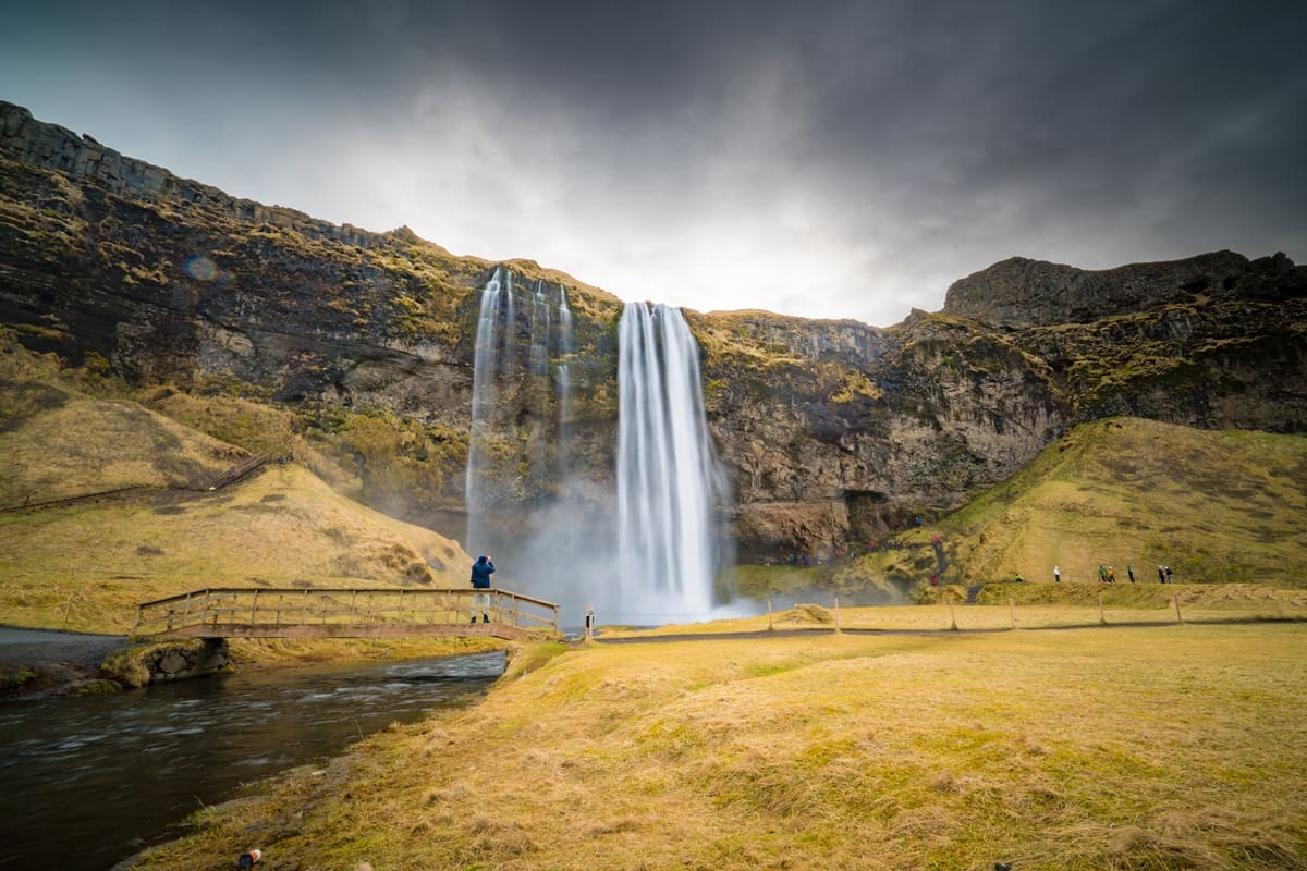 Seljalandsfoss waterfall, famous for the hidden pathway behind and around it.