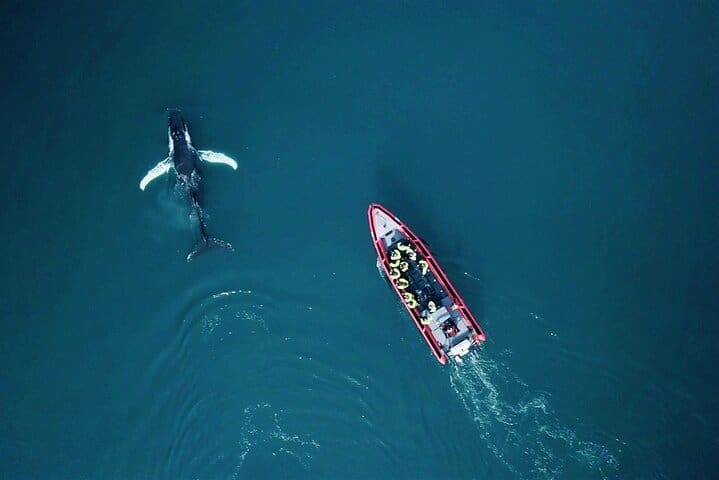 The RIB boats seat 12 passengers per boat, each with an expert whale-watching guide and captain on board. The focus is on small group tours, eliminating competition for the best view on board. Each passenger gets a warm suit and a life jacket on board.