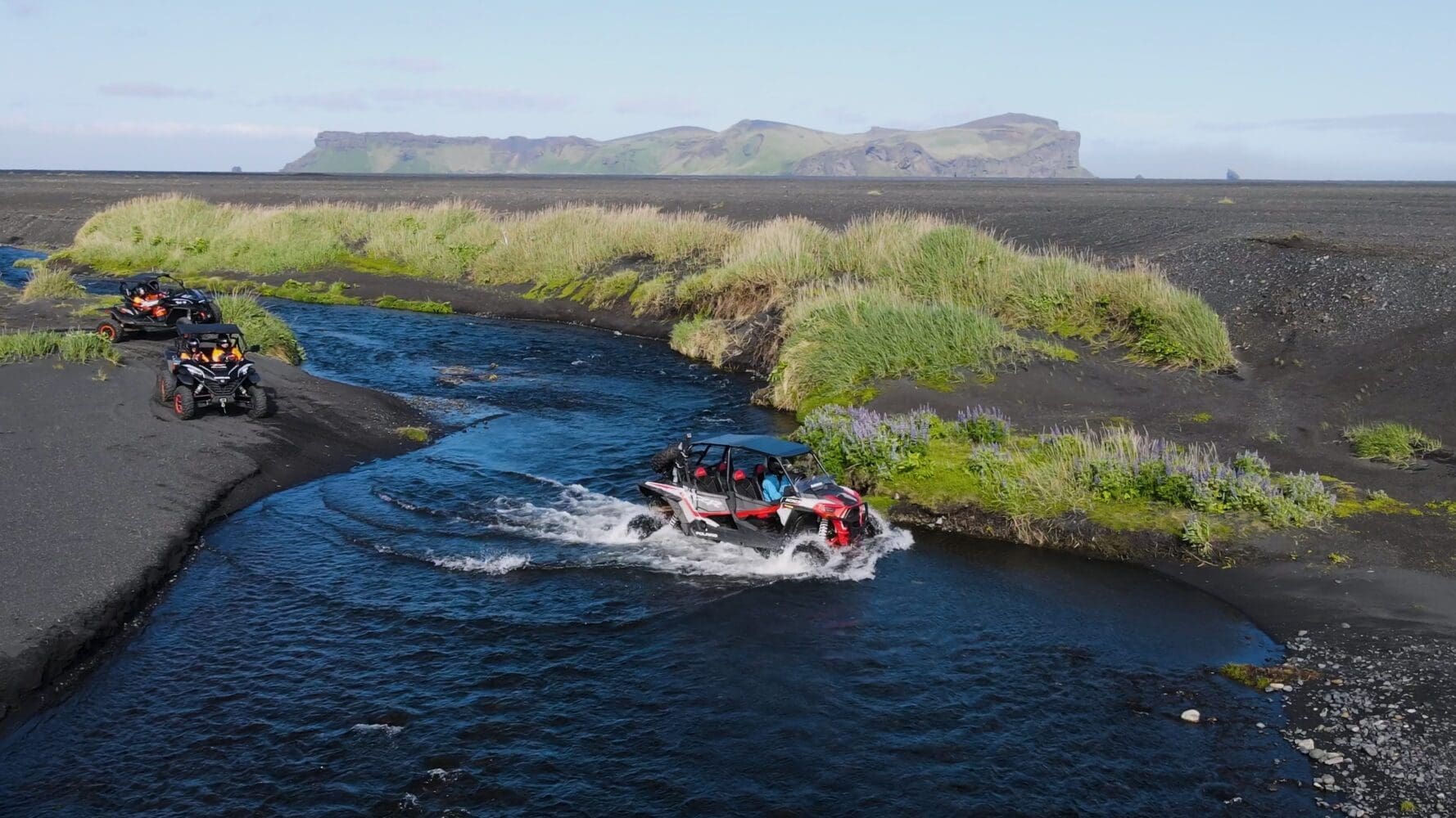 As you speed across the black volcanic sand, you’ll be treated to stunning views of Reynisdrangar, the famous basalt sea stacks rising from the ocean. While most visitors admire these dramatic rock formations from Reynisfjara, this Black Beach buggy tour offers a far more breathtaking perspective away from people and crowds. Our local guides will share fascinating stories and folklore about these legendary formations, adding a cultural touch to your unforgettable buggy tour in Iceland.